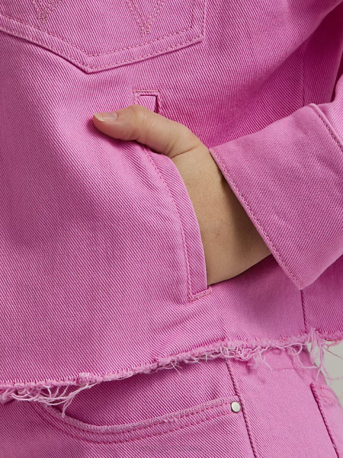 Transition between seasons in the denim you love with our women's cropped shacket. Offering the weight of a jacket with the look of a favorite snap shirt, this hybrid style offers the best of both worlds. It's crafted for comfort and lasting quality, providing endless opportunities for layering. It features a slightly boxy silhouette with a cropped length and frayed hem to help give it that timeworn feel right from the start. Plus, the bold hardware, chest pockets with 'W' stitching, and pointed back yoke all give this shacket some Western-inspired personality.